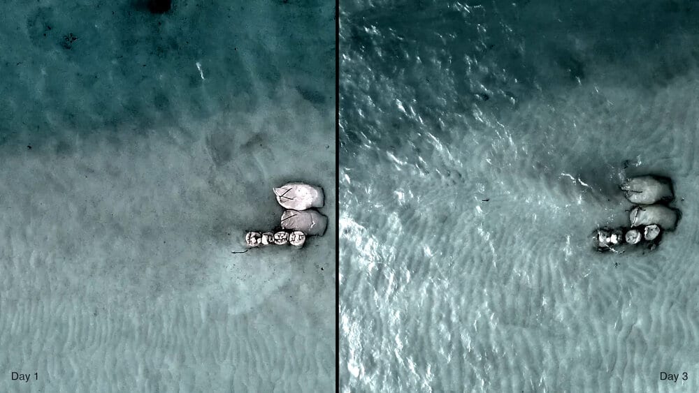 Desde entonces, y tras un segundo experimento en Noviembre de 2019, han estado recopilando datos a través de imágenes satelitales, imágenes de drones y mediciones físicas para analizar la acumulación de arena en el arrecife.